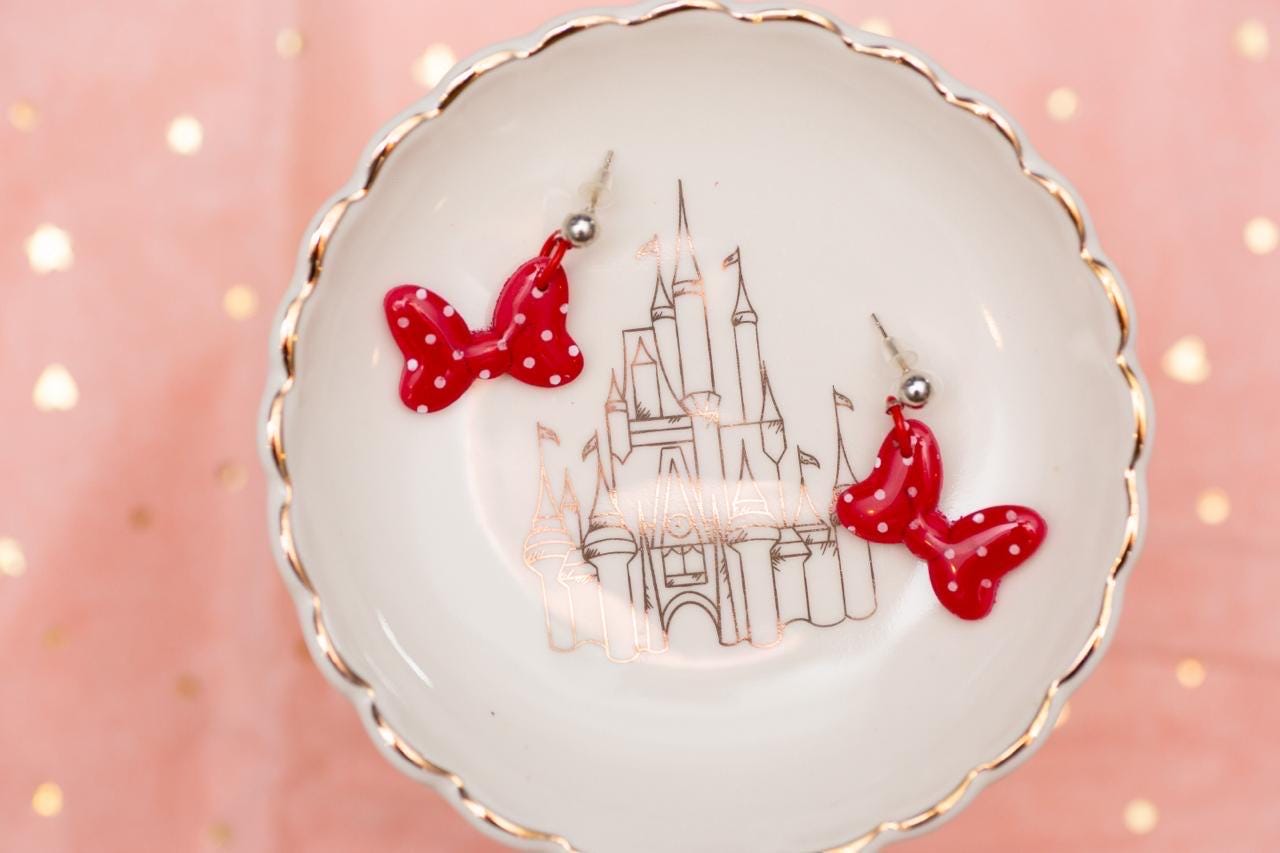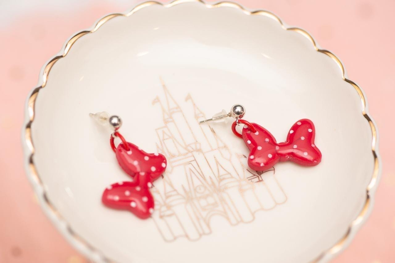 Looking for a cute and playful accessory to add to your collection? These pink polymer clay Minnie Mouse bow earrings and pink jump rings are the perfect choice! Handmade with care, these earrings are sure to turn heads and make a statement.