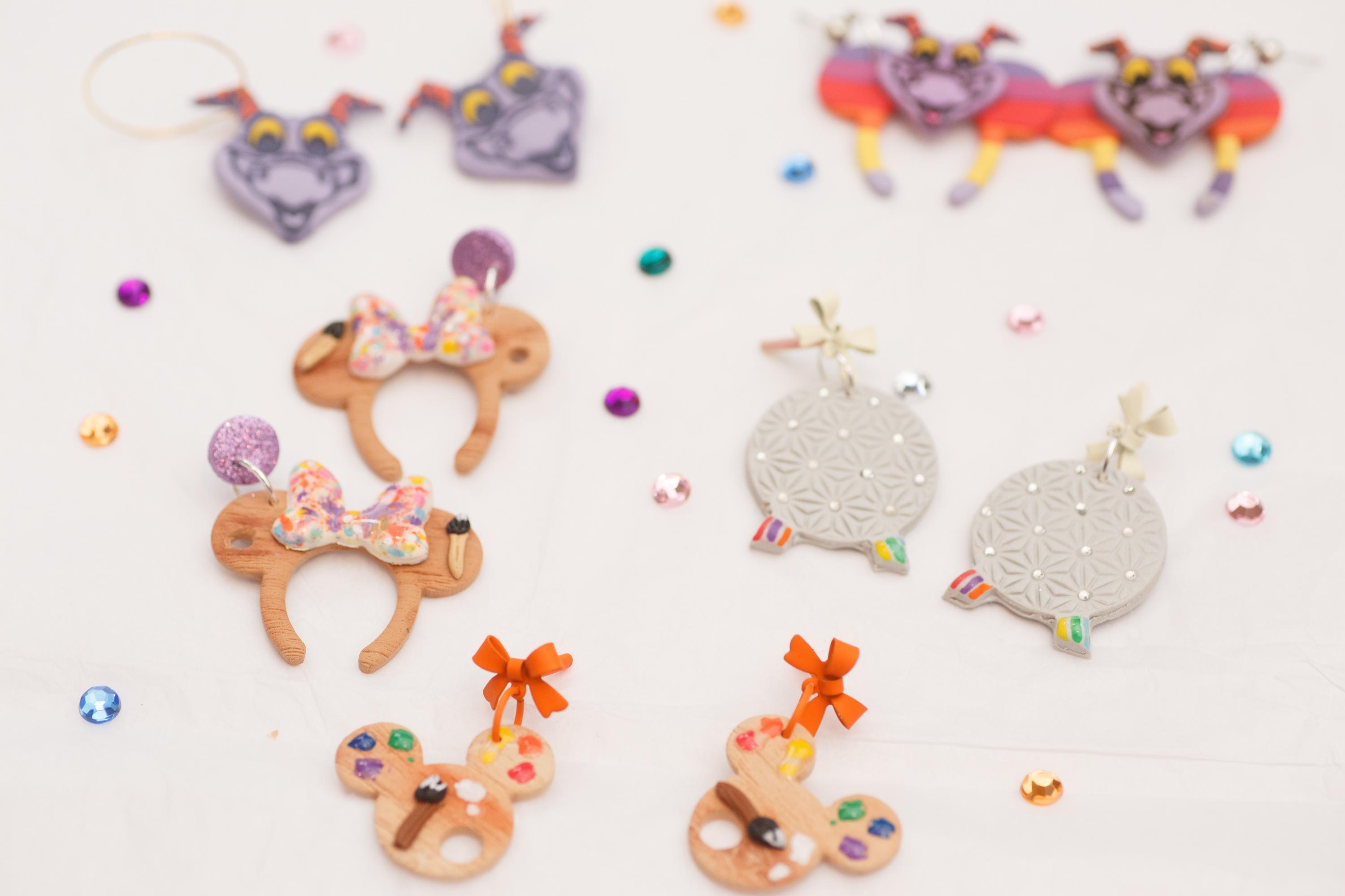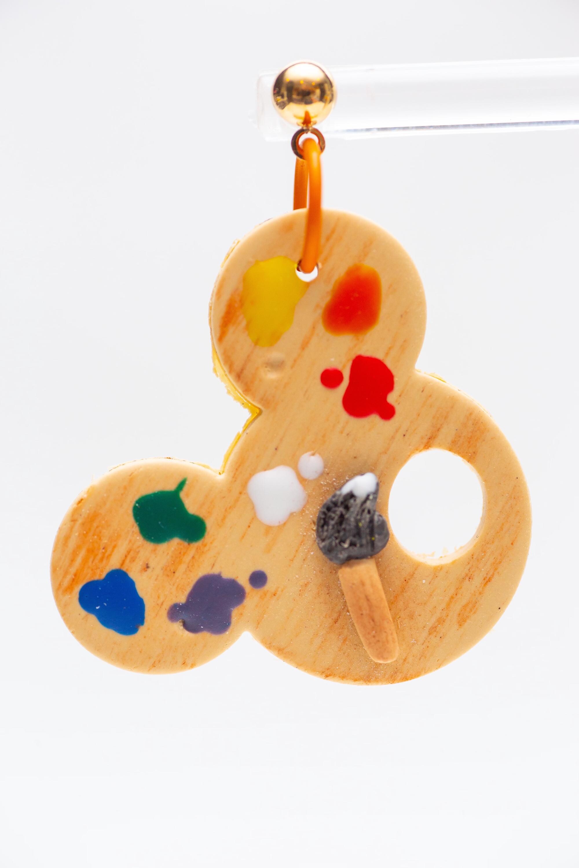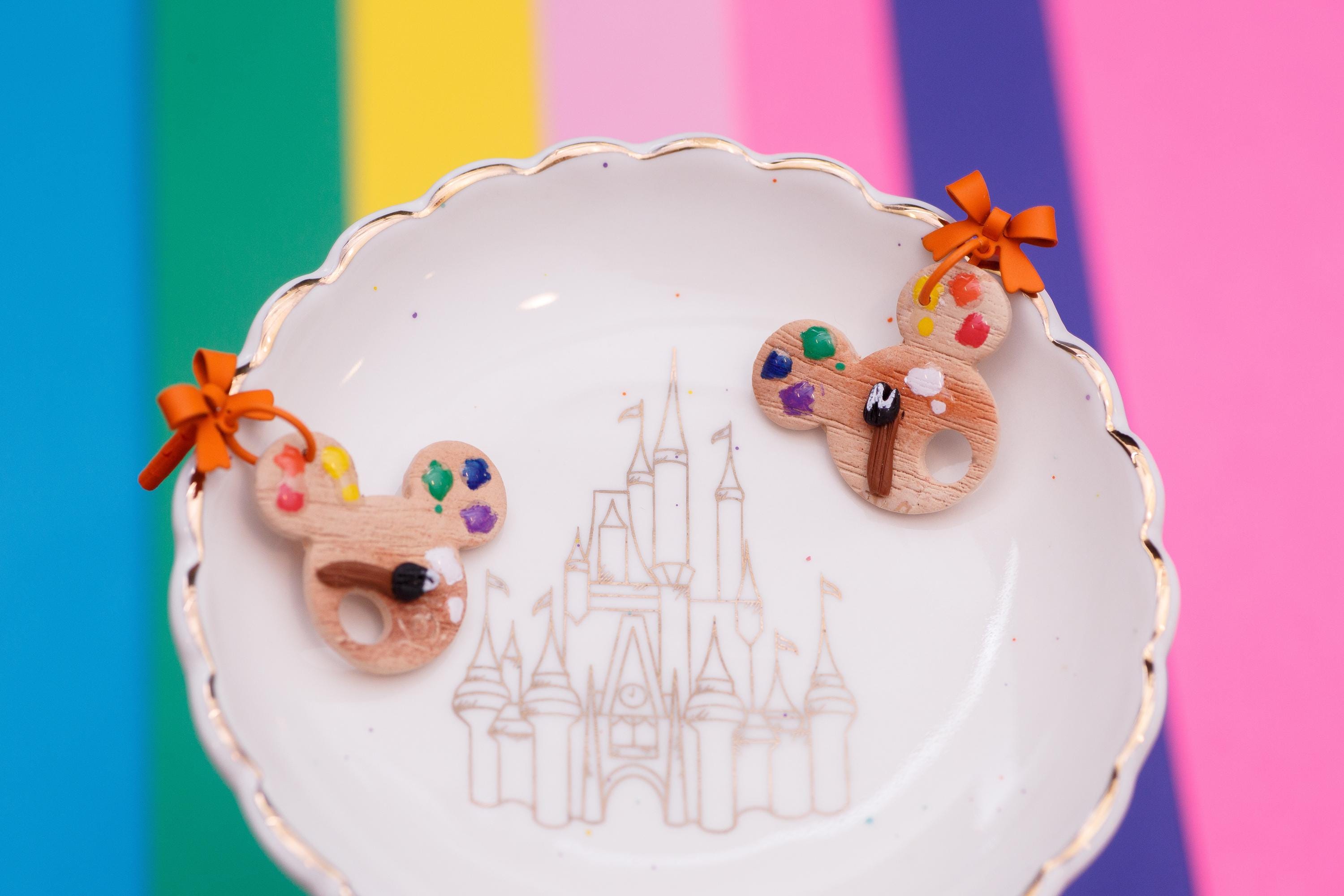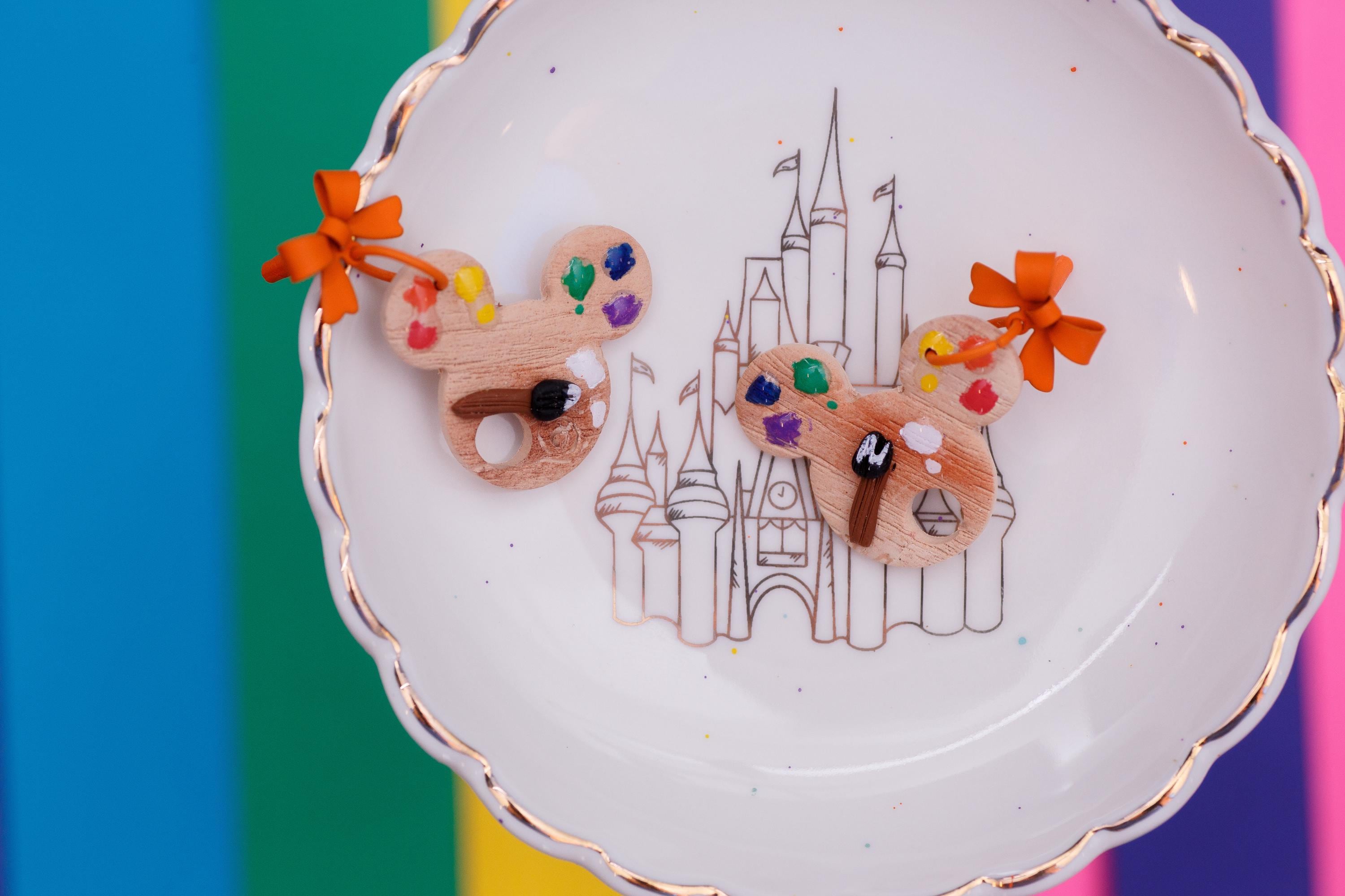 These lightweight Mickey-shaped clay earrings, showcasing a burst of colors inspired by an artist's palette are a perfect Disney park accessory . Handcrafted with love, these unique pieces add a touch of whimsy and creativity to your look, making them a perfect fit for the Art of Animation Festival. Stand out with a dash of Disney magic and artistic flair!"