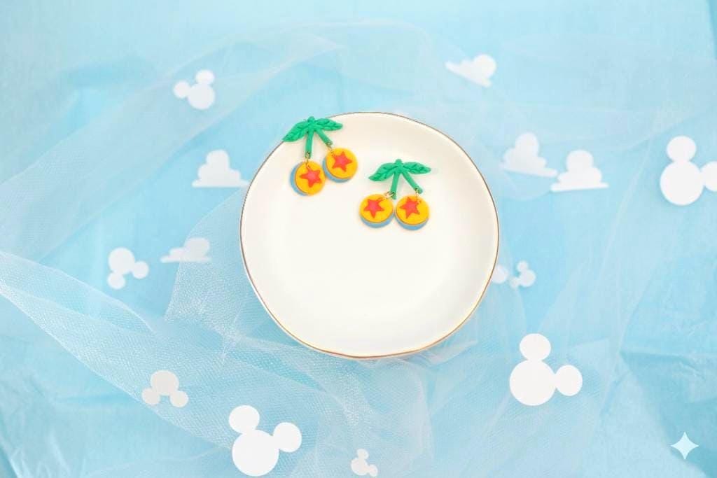 Get ready for an adventure to infinity and beyond with these adorable, handmade cherry earrings! This unique design combines the familiar shape of cherries with the iconic Luxo ball from Pixar. These earrings are the perfect whimsical accessory for any Toy Story or Pixar fan.
