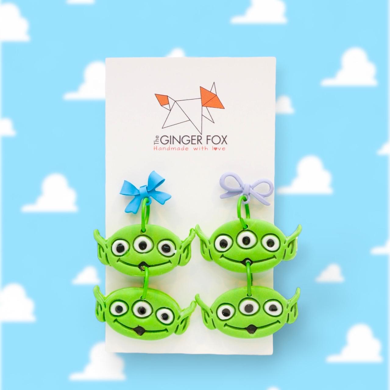 Inspired by everyone's favorite Space Aliens from Pizza Planet, these earrings are designed to make you smile and get noticed. Whether you're heading to Disneyland, Disney World, a Pixar Fest, or just want to bring a little bit of the magic home, these are the ultimate accessory!